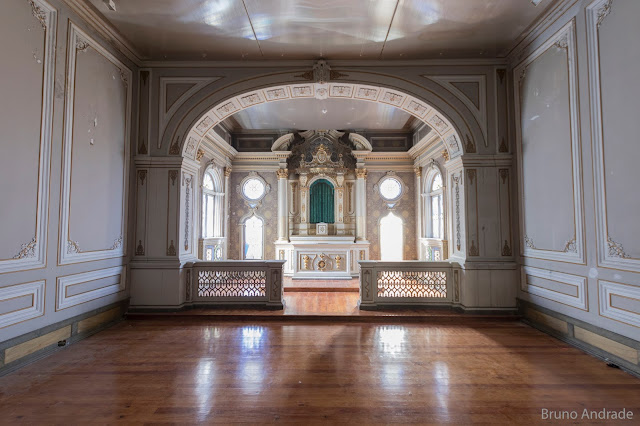 Os corredores outrora movimentados e as enfermarias outrora cheias são agora espaços escuros embalados pelo barulho ensurdecedor do silêncio. Fantasmas deambulam na penumbra e ondas de poeira brilham aos raios de luz que entram pelas frinchas.